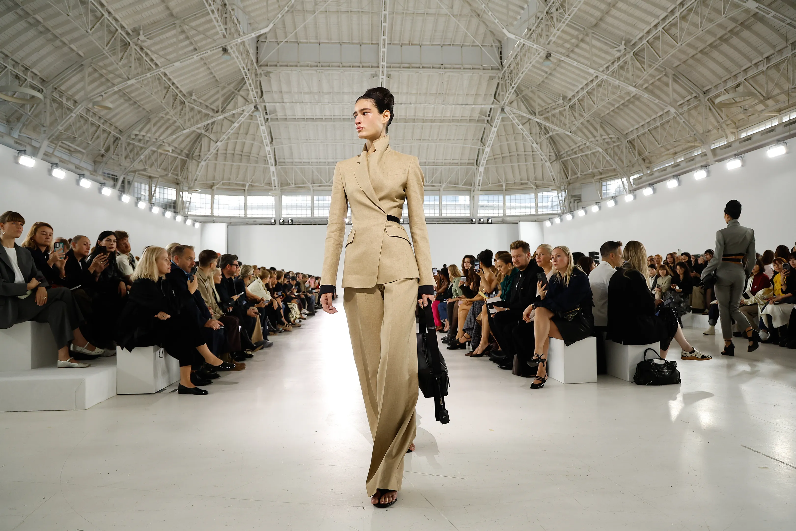 Yes. Structured power dressing returns in SS26 with refined tailoring that emphasizes architectural cuts and tonal layering.