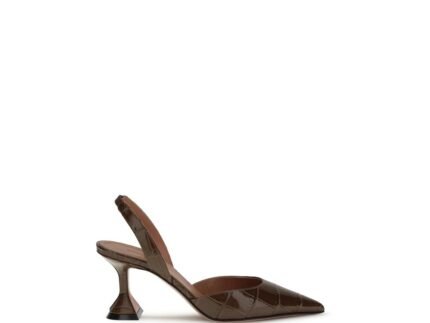 The Holli slingback Pumps by Amina Muaddi strike the perfect balance between sophistication and modernity. Crafted in a refined coffee shade, these shoes stand out for their tapered toe and distinctive sculpted heel, a true icon of the fashion house. The back strap ensures a secure and feminine fit, while the slender design enhances the elegance of the foot. The crocodile-print leather adds a touch of luxury and originality.