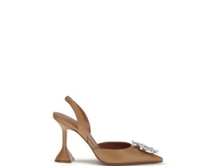 The Begum slingback Pumps by Amina Muaddi are a masterpiece of elegance and style, crafted from quality leather. The star-decorated brooch adds a sparkling and distinctive accent, while the tapered toe enhances the silhouette, creating a slender and sophisticated effect. The sculptural heel, an icon of the brand, adds a unique and bold design element, perfect for those seeking a mix of comfort and high fashion. These pumps are the perfect accessory for those who want to combine class and originality on any occasion.