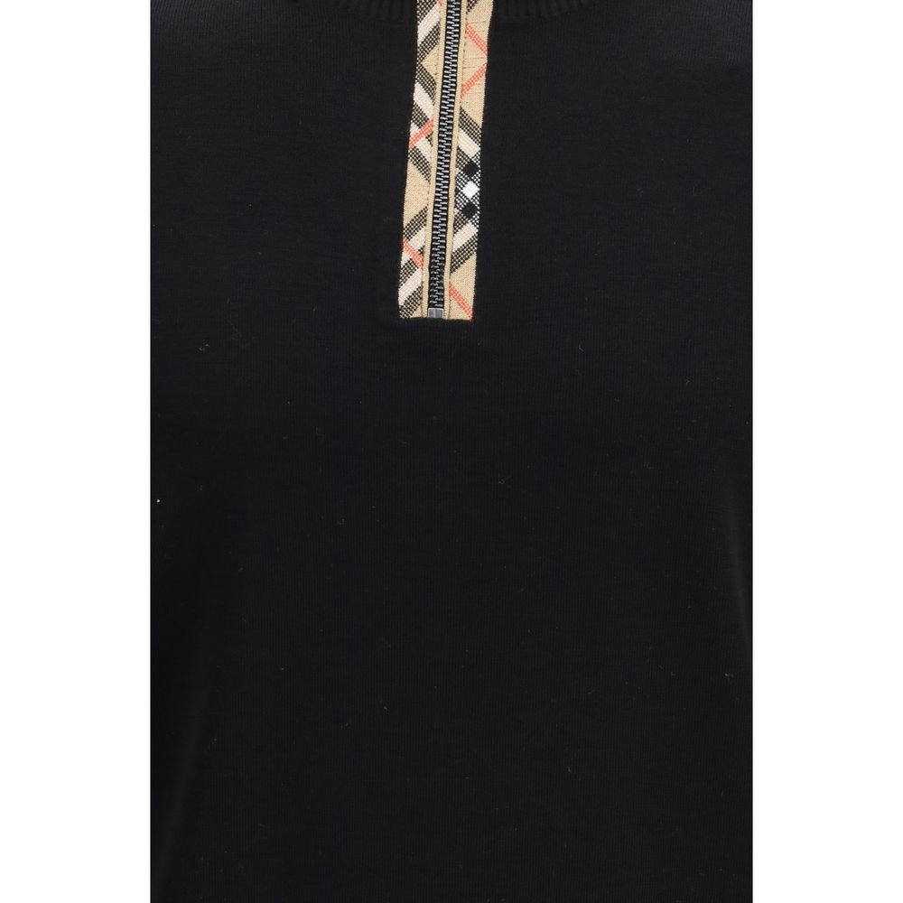 The Check wool Sweater by Burberry is a lightweight wool knit pullover with a regular fit. The design features a B-cut zipper and iconic Burberry Check detailing in sand beige. The zipper closure and ribbed trim complete the design, making it an elegant and versatile piece.