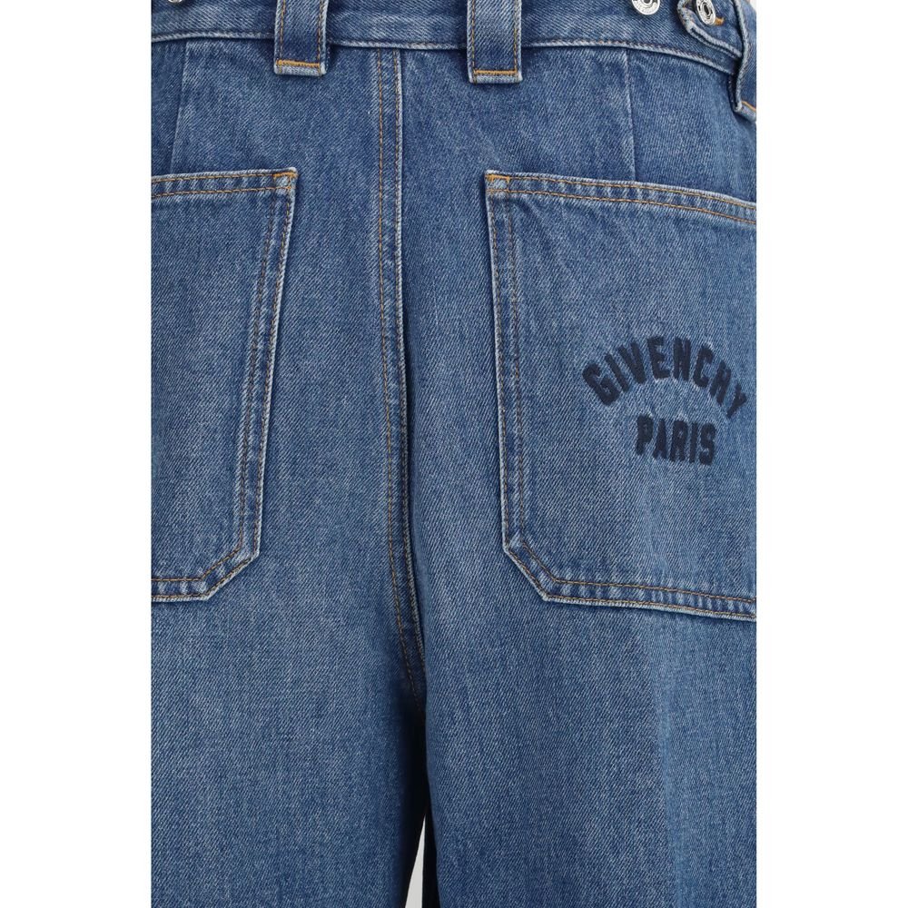 The Cocoon cargo Jeans by Givenchy reimagine denim with a bold and contemporary cropped silhouette. The lightly washed cotton construction supports the structured shape, while the adjustable waist with buttons and belt loops ensures versatility. Front, side and back pockets articulate the design with a utilitarian attitude, enhanced by the embroidered logo lettering that subtly signs the piece.