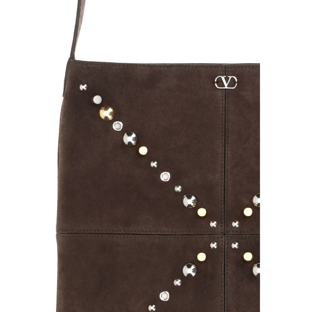 The Nellcôte Shoulder Bag by Valentino Garavani is crafted from soft suede and embellished with long fringes that add movement and character to the design. Its edges are outlined with spherical studs and small metal rivets, iconic details that bring a bold yet refined touch. The adjustable suede shoulder strap allows the bag to be worn either on the shoulder or cross-body, ensuring versatility and comfort. The look is completed with palladium-finish metal hardware and a small VLogo Signature detail, a testament to the Maison’s unmistakable elegance.