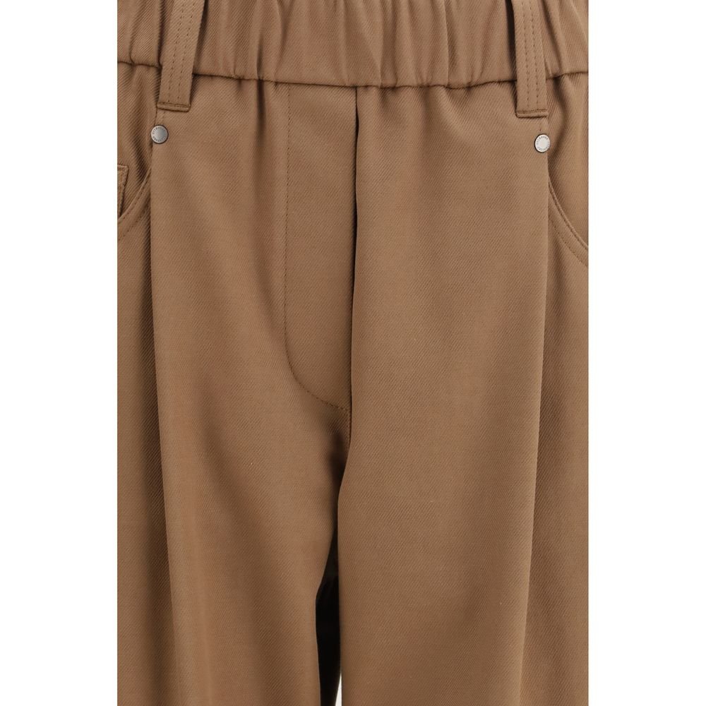 The cotton Pants by Brunello Cucinelli reinterpret essential tailoring with quiet refinement. Crafted in a classic five-pocket design, they feature an elasticated waistband with belt loops that balances structure and comfort. Two front pleats add subtle volume, while the high-rise waist and regular fit create a clean, elongated silhouette. Finished with a cuffed hem and a monochrome palette, they embody the brand’s understated elegance and versatile sophistication.