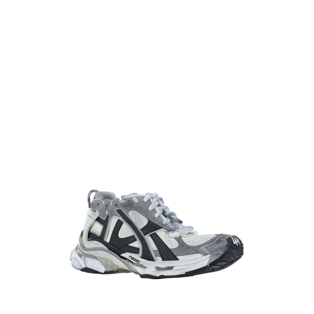 Runner Sneakers by Balenciaga, front closure via multiple laces, mesh and mesh paneling, textured chunky rubber sole, logo on sole and insole, double tongue closure, logo insole, reflective details, oversize design.