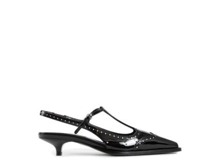 – Composition: 100% calf leather – Inner: Leather – Insole: Leather – Sole: Rubber – Pointed toe – Patent effect – Elastic back insert – Perforated detail – Adjustable buckle closure – Branded insole – Heel 3,5 cm – Made in Italy – Gender: WOMEN –