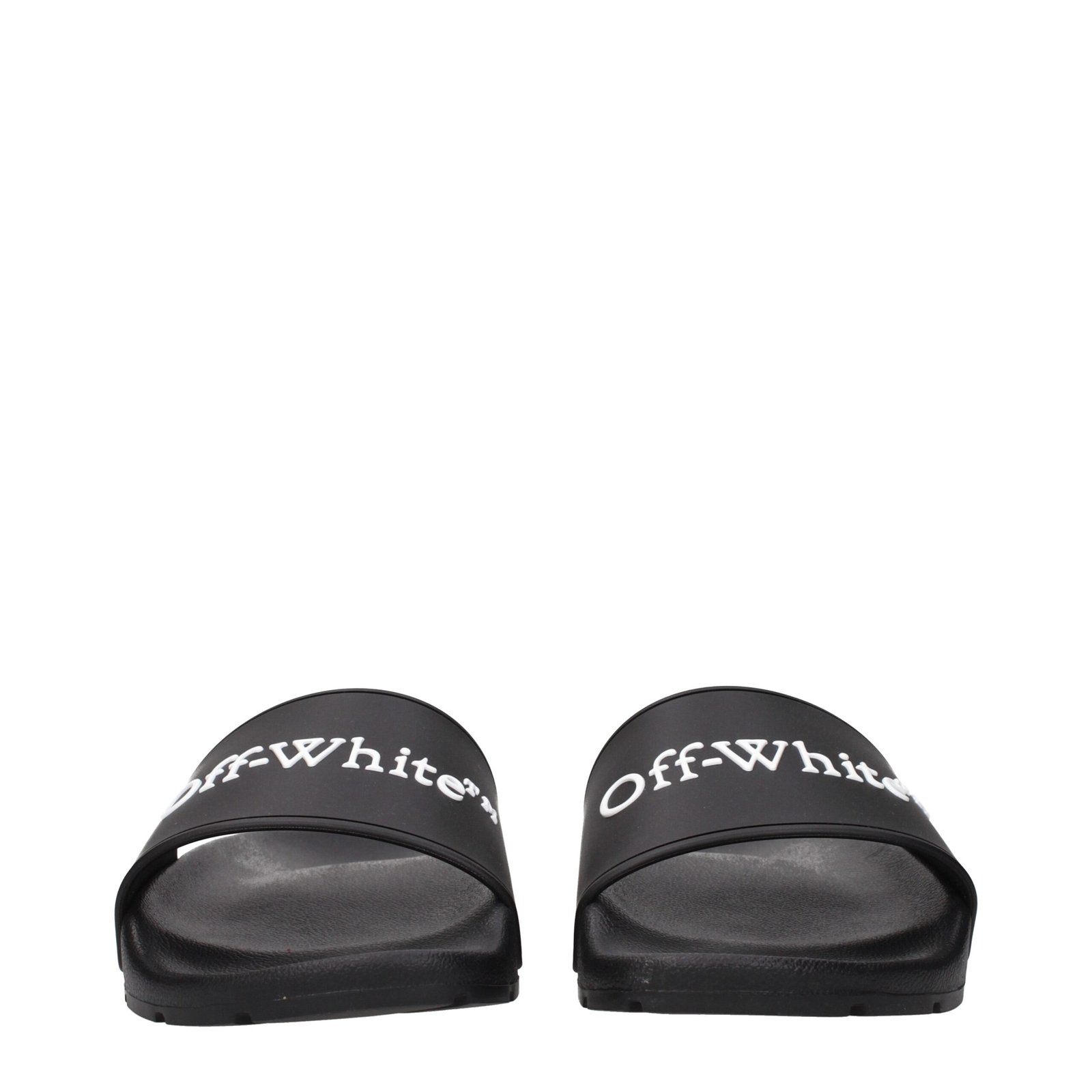 The product with MPN OWIU001MAT0011001 and code F84957 rubber in black is a slippers and clogs designed by Off-White. It has features like front logo.