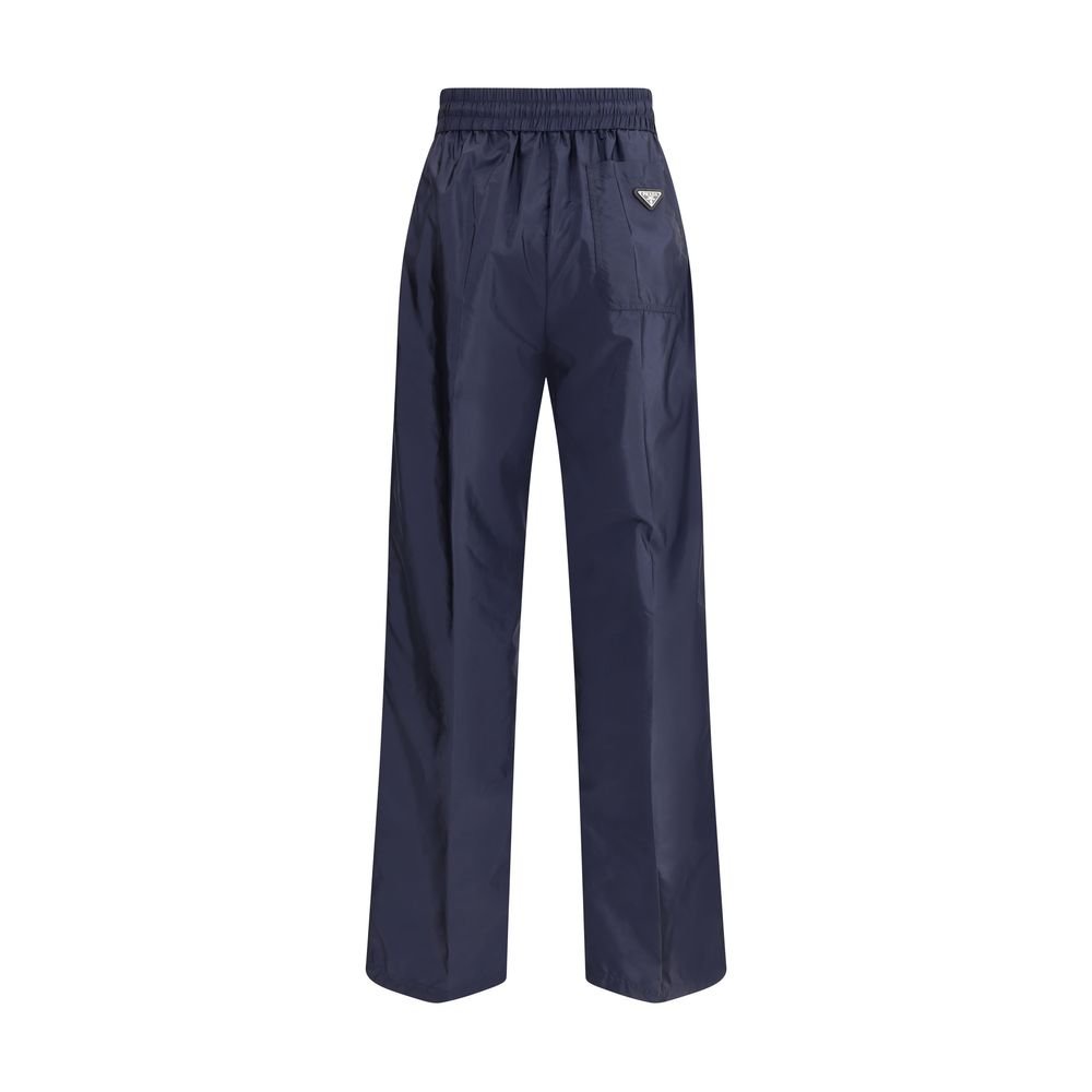 Prada’s re-nylon Pants feature an elasticized waistband with drawstring for comfortable adjustment, lace side bands for a feminine touch, and a straight-leg silhouette. Two side welt pockets and a patch pocket on the back embellished with the iconic triangular logoed plaque complete the garment.