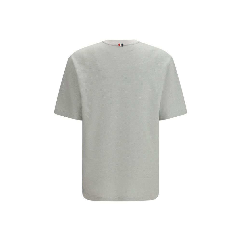 The Short-sleeve cotton-linen T-shirt by Thom Browne featuring a ribbed texture that blends comfort with refined structure. The chest pocket adds a functional note, while the striped detail and logo patch reference the brand’s signature codes. Button accents elevate the design with a tailored touch, redefining a casual staple through Thom Browne’s precise and unmistakable aesthetic.