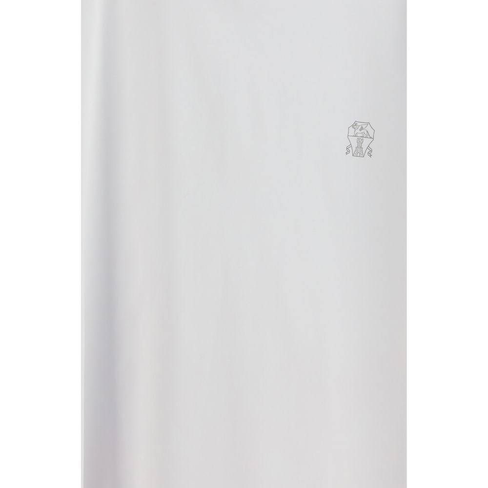 The cotton T-Shirt by Brunello Cucinelli is an elegant and simple yet refined garment, perfect for those seeking comfort and style. The monochrome design suggests a clean and versatile look, suitable for various combinations. The contrasting logo on the front, typical of the brand, adds a distinctive touch without being too obtrusive, maintaining elegance. The regular fit ensures a good fit, making it ideal for different body types.