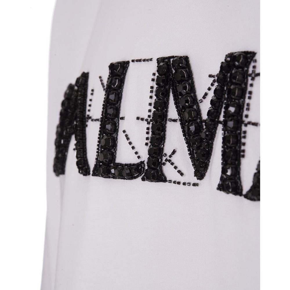 – Composition: 100% cotton – Short sleeves – Ribbed round neck – Crystal embellishment logo – Hand wash – Made in India –