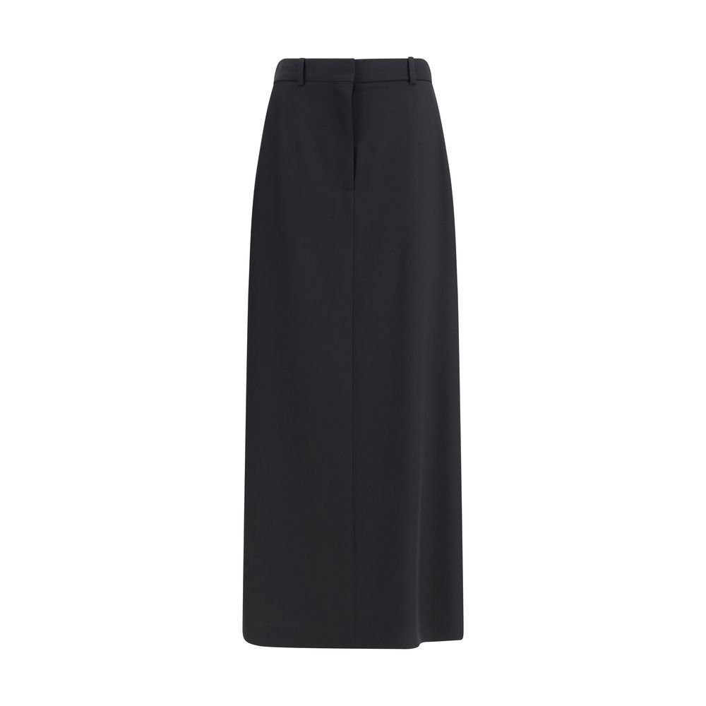 Fusta The Row din lână virgină oferă un look elegant, cu siluetă lungă și buzunare practice.