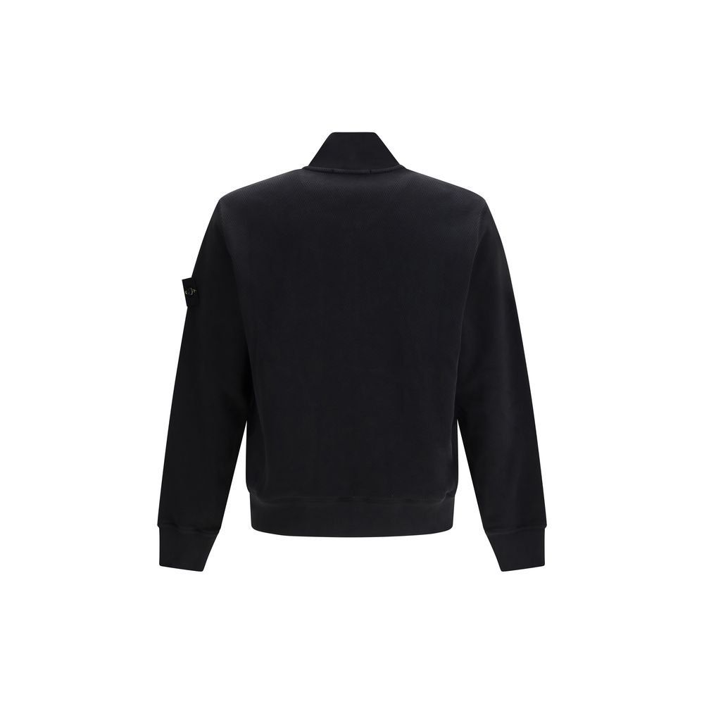 Jacheta Stone Island din bumbac negru combină tehnologia avansată cu un design sportiv și confortabil.