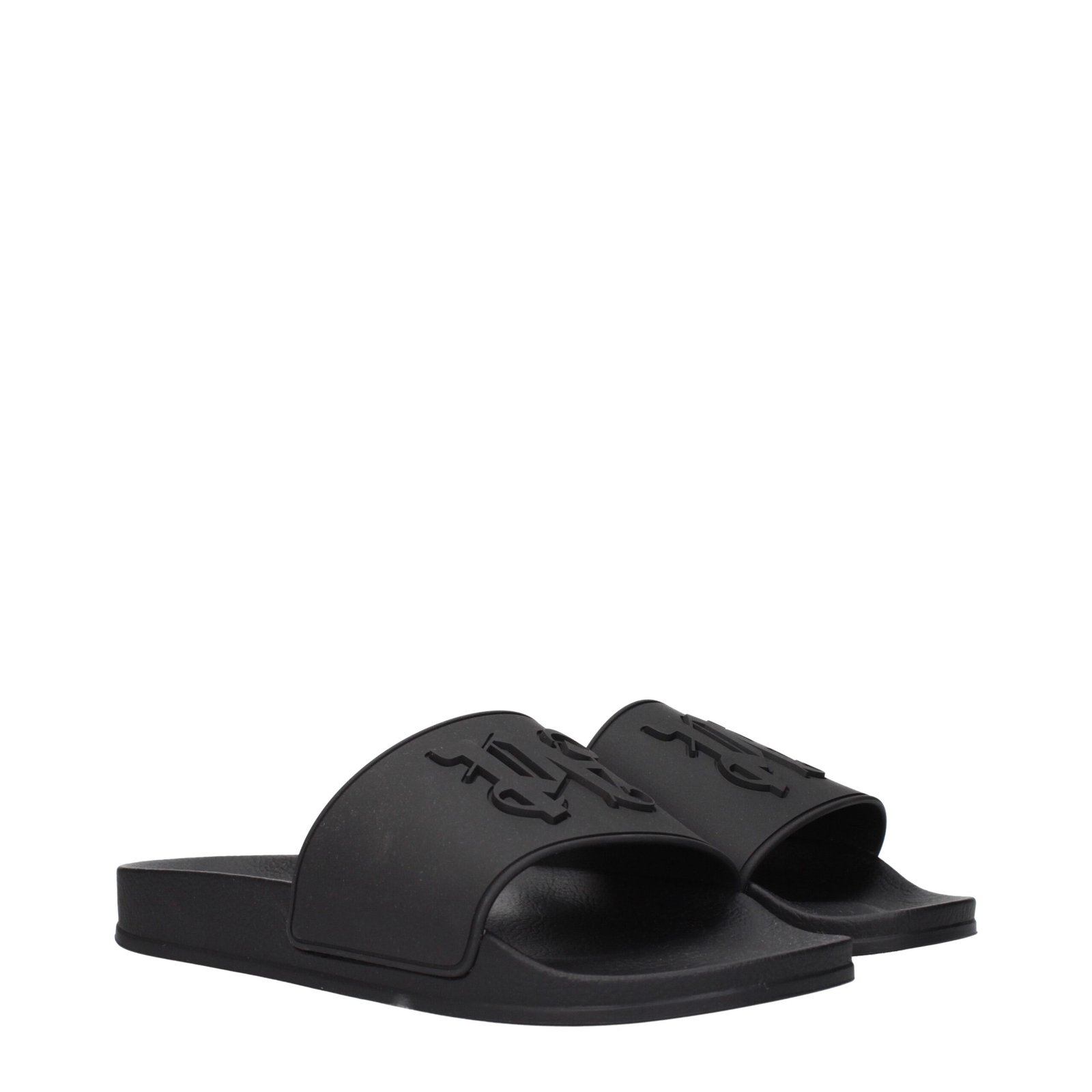 Papuci eleganți Palm Angels negri din bumbac, ideali pentru relaxare și purtare zilnică.