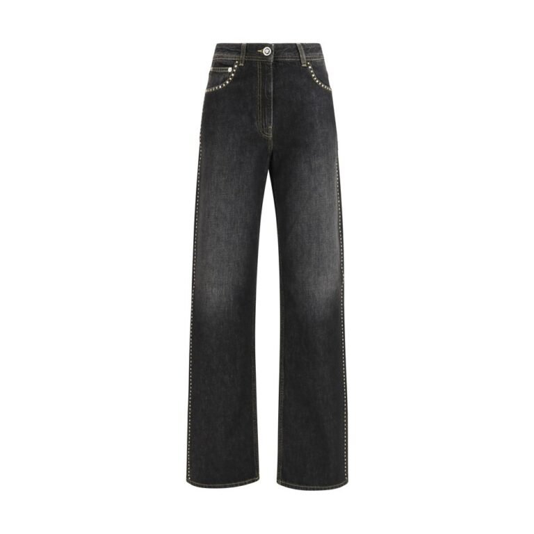The straight Jeans by Versace with studs combine classic denim with iconic brand details, such as the Medusa button and