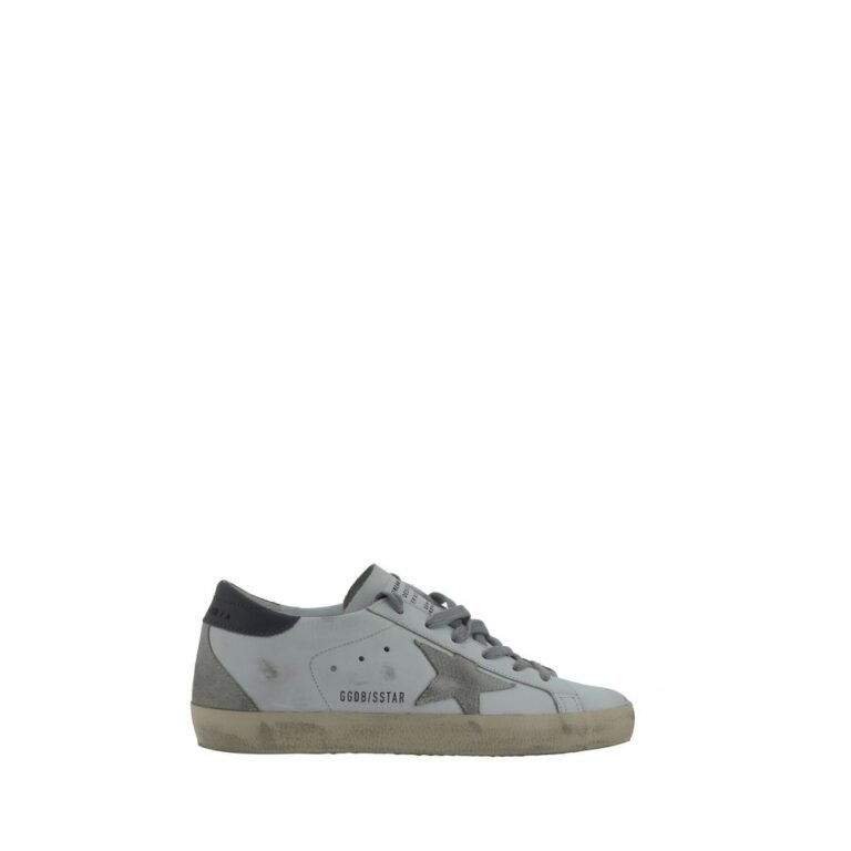 Goatskin Superstar Sneakers by Golden Goose, lace-up front closure, iconic star on contrasting side panel, round toe, flat sole, contrasting